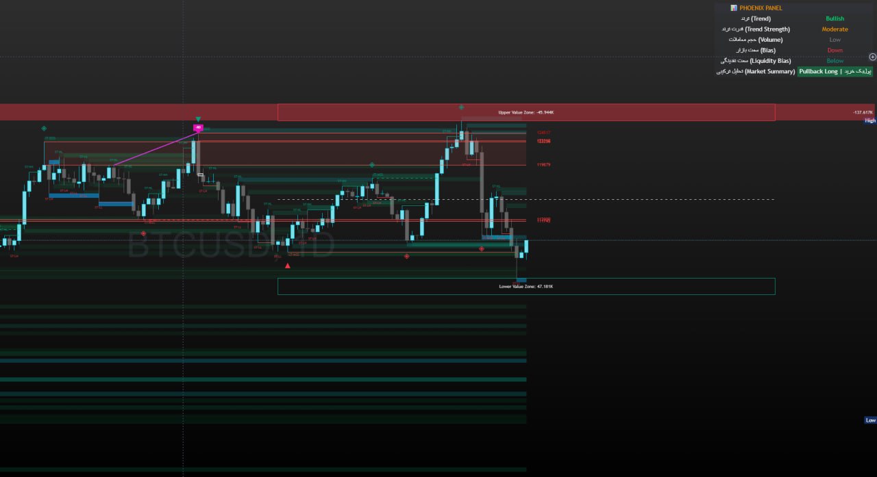 ترکیب Phoenix Liquidity با Phoenix Indicator یا Phoenix Smart Panel دیدی جامع از جریان نقدینگی و روندها میدهد — ترکیبی فوقالعاده برای تحلیل ساختار مارکت.